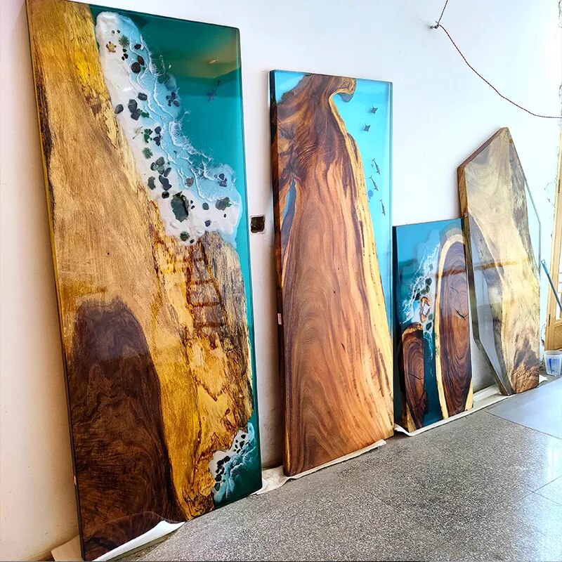 Epoxy resin river tabletop board, solid wood, raw wood, ocean tea table, tea table, ocean wave tea table, new dining table